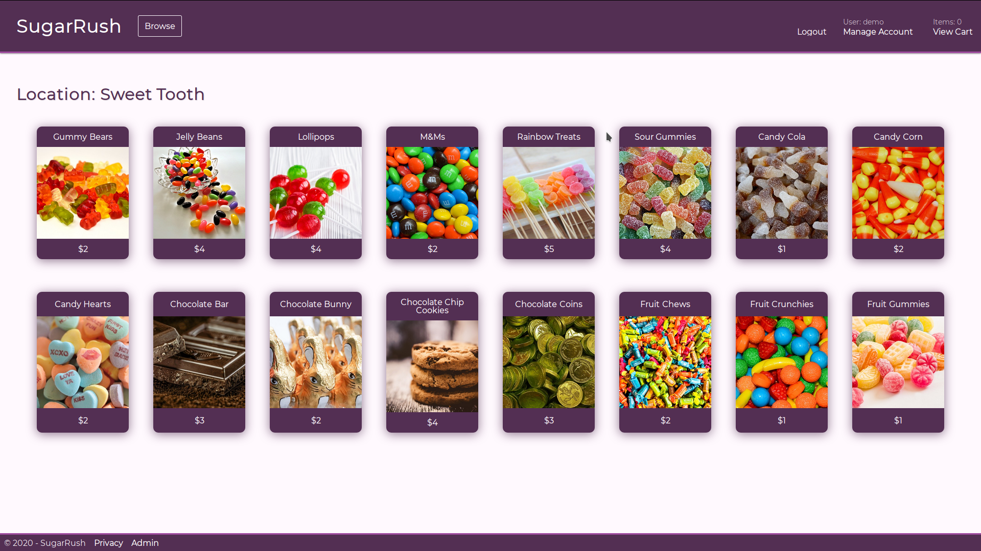 The goal of this project was to utilize full-stack technologies in order to further my experience in this realm. I decided to create a fictional store that sells candies and other sweets.